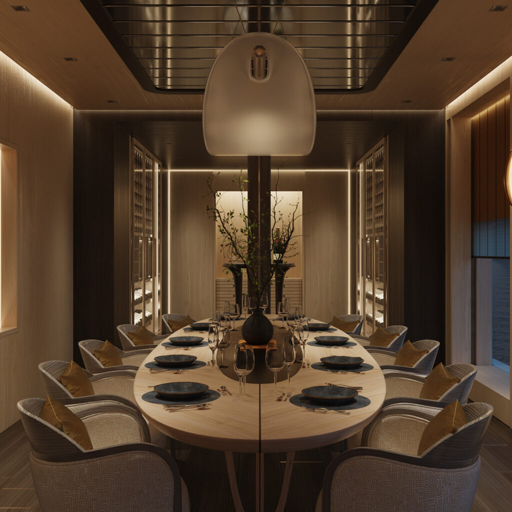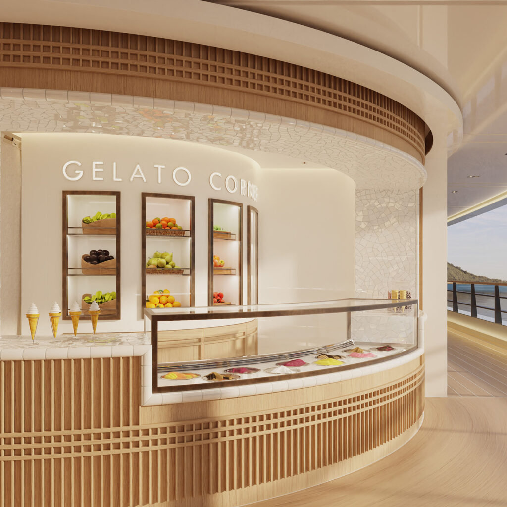 À terre, le programme d’expériences culturelles, artistiques et historiques est enrichi par des explorations sur mesure orchestrées par le service de conciergerie. Celles-ci incluent des arrivées et des départs facilités grâce aux deux héliports et aux six tenders du yacht, dont plus de détails seront révélés ultérieurement. Tout au long du voyage, un Suite Host dédié assure un service fluide et intuitif, offrant aux hôtes la liberté de vivre chaque journée avec une aisance sereine et une intimité absolue.