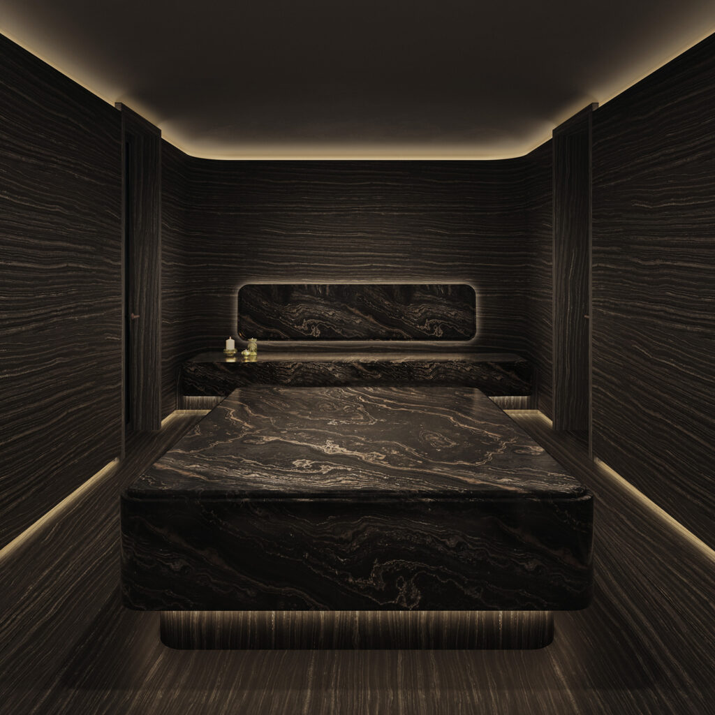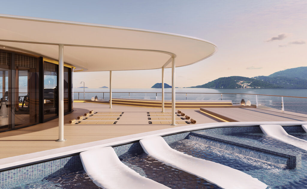 S’étendant sur 1 190 mètres carrés répartis sur deux ponts, l’Aman Spa — le plus vaste de sa catégorie — comprend huit suites de soins face à l’océan, chacune dotée d’une terrasse privée, ainsi que de douches et bains à remous en plein air, un hammam et un banya, accompagnés d’espaces dédiés à la relaxation.