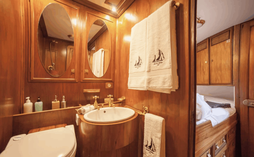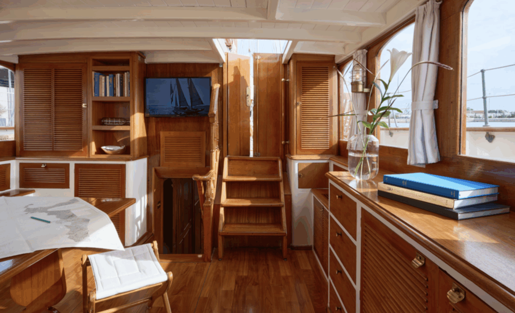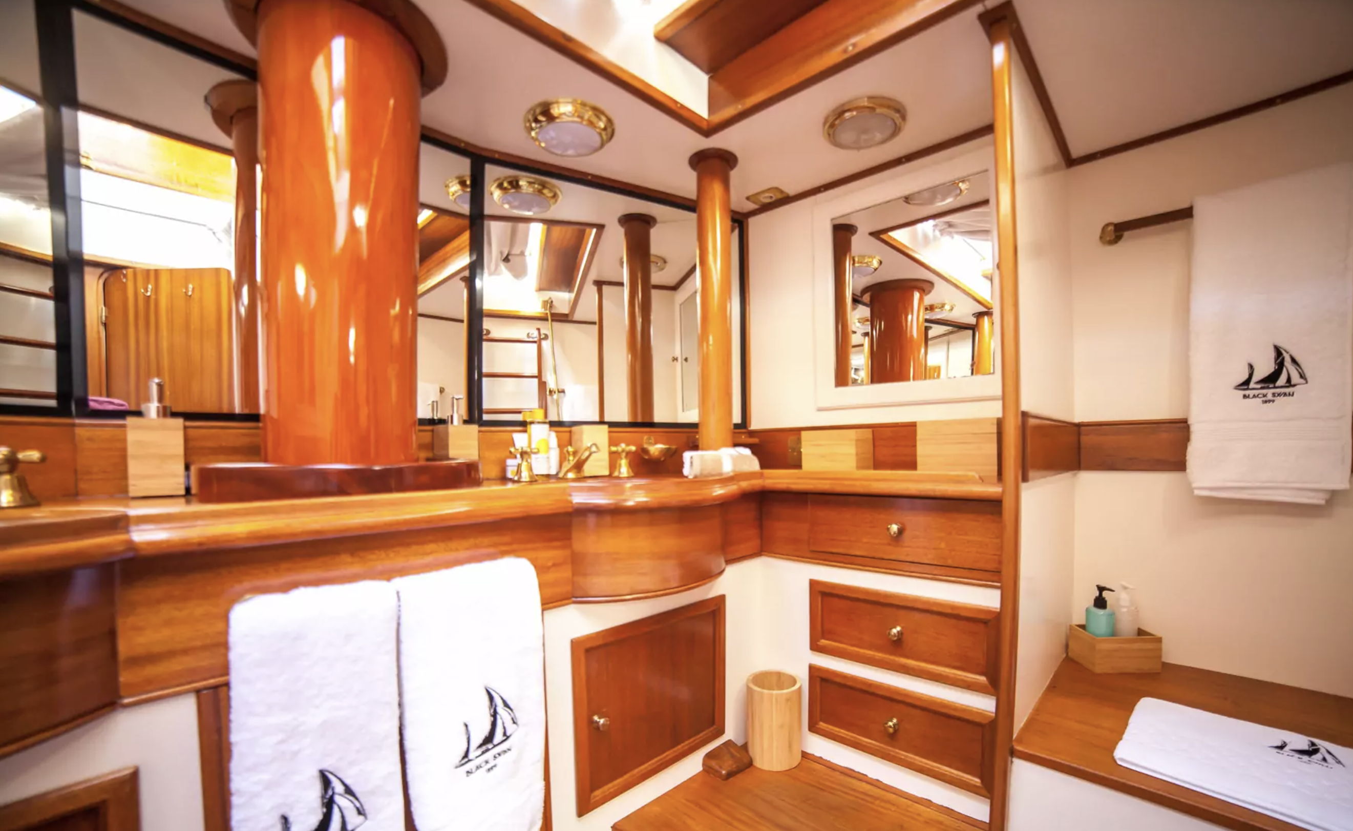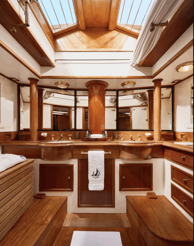 Black Swan offre un hébergement pour huit personnes dans trois cabines doubles et une cabine double d’appoint. Il dispose aussi de deux espaces de détente et de restauration dans le salon et sur le pont avant. Son style yachting traditionnel se retrouve dans tout l’intérieur.