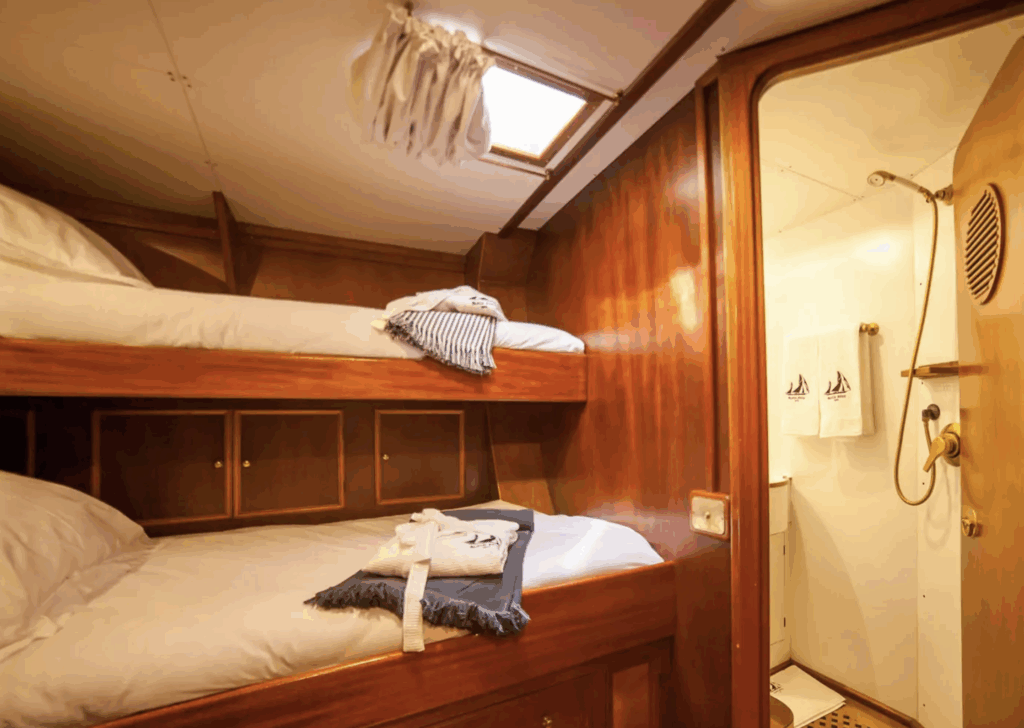 - 3 cabines pour 6 hôtes/passagers ainsi qu’une cabine d’appoint.