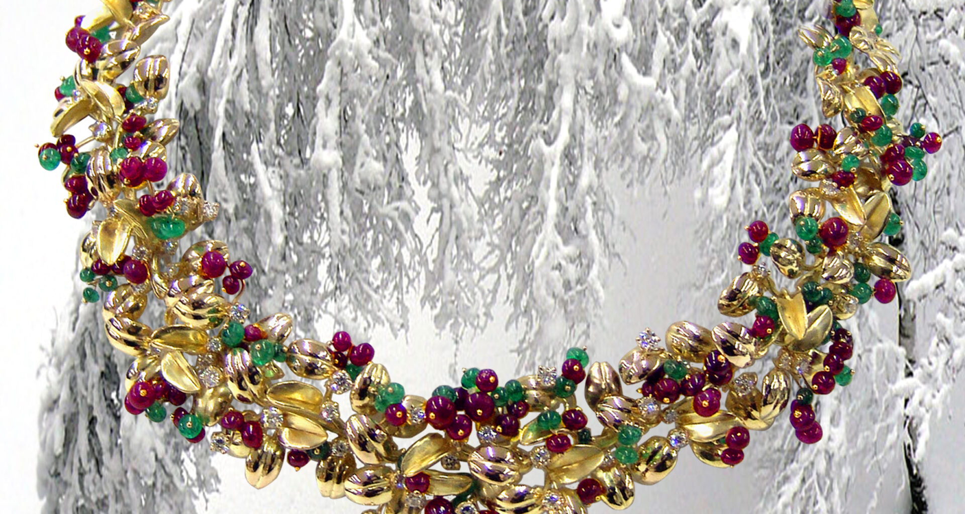 Bagues, broches, colliers, boucles d’oreilles et bracelets sont façonnés sur place, en or, diamants, perles et pierres précieuses, avec une signature emblématique : les briolettes montées à l’envers, devenues son domaine d’expression privilégié.