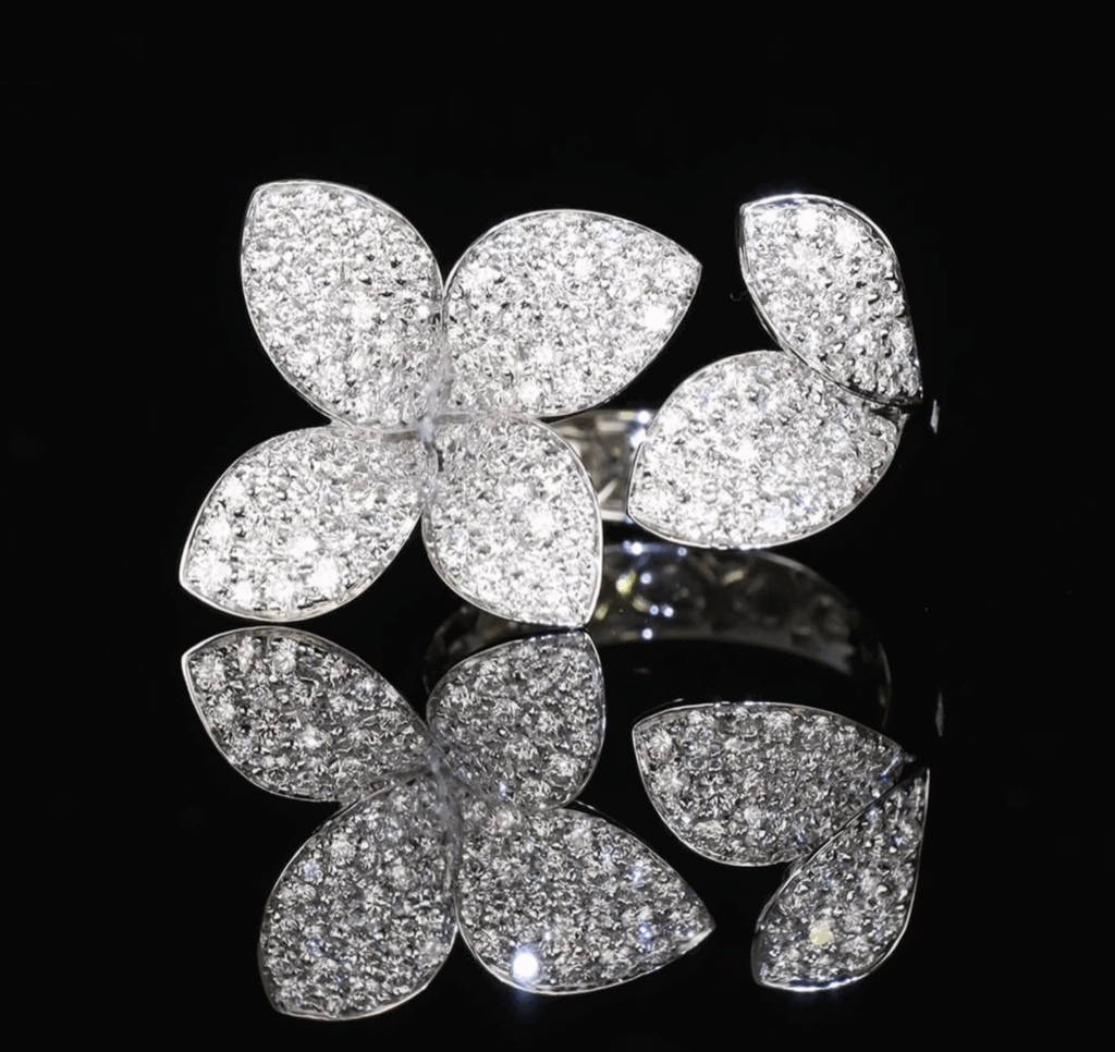 Les diamants sertis sur les bijoux Pasquale Bruni présentent les caractéristiques suivantes : couleur F-G, pureté VVS-VS. Ces normes ne sont pas spécifiques à la collection Atelier qui monte des pierres exclusives.