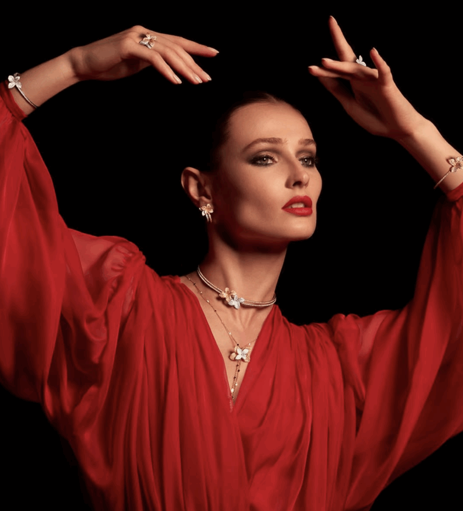 Un hommage aux mondes féminins pleins de passion signé Pasquale Bruni. Fleurs, feuilles et papillons brillent sur les mains. Magie gracieuse et précieuse sur la peau.