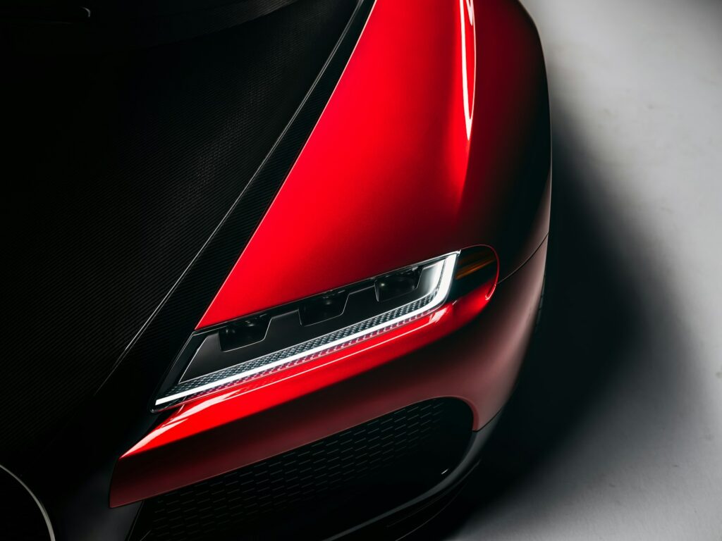 L’extérieur du véhicule révèle une évolution subtile mais significative. En conservant la posture légèrement inclinée vers l’arrière de la Veyron et sa ceinture de caisse abaissée – une approche audacieuse à une époque où les supercars se contentaient de répéter les silhouettes « en coin » penchées vers l’avant – chaque surface a été retravaillée avec soin.