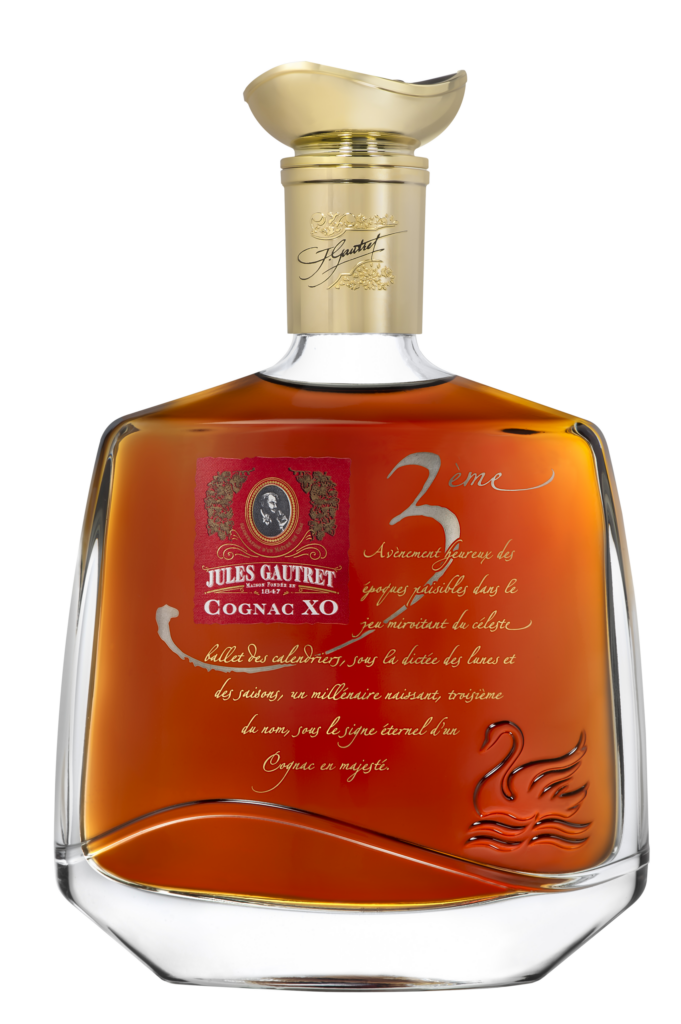 Jules Gautret 3ème millénaire est le résultat d’un assemblage dans lequel s’expriment et se combinent la puissance des tanins apportés par le long vieillissement en fûts de chêne et la délicatesse des eaux-de-vie du terroir cognaçais. La précieuse sélection des eaux-de-vie permet d’exprimer toute la richesse aromatique. 71,99 euros – GMS