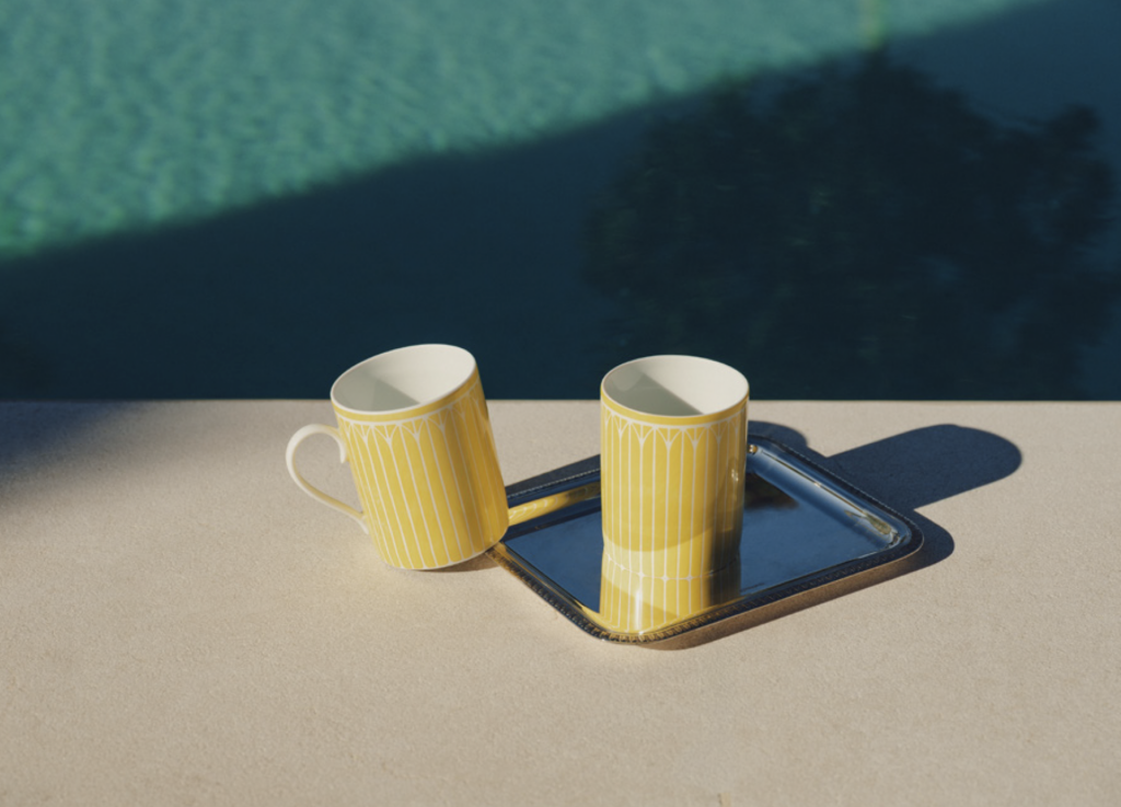 Malmaison Riviera s’inscrit dans la continuité des collections Malmaison et Malmaison Impériale. Ce nouvel opus réinterprète les codes raffinés et intemporels des services en porcelaine Christofle avec une intention libre et ensoleillée, pour un usage quotidien. La couleur s’invite pour la première fois, un jaune profond et naturel illumine cette nouvelle collection Malmaison Riviera, qui incarne un art de vivre à la fois décontracté et résolument chic.