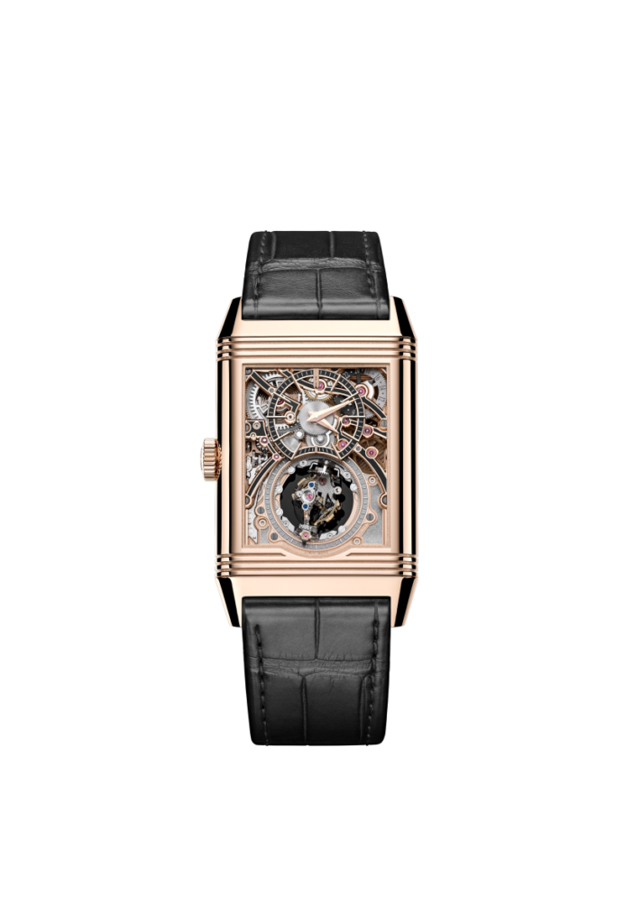 Composé de 382 composants, le Calibre 179 est extrêmement complexe, mais le boîtier reste élégant et confortable, avec une épaisseur totale de seulement 13,63 mm. Fabriquée en or rose 18 carats (750/1000) et pesant près de 30 grammes, la boucle déployante réglable et brevetée de la Reverso Hybris Artistica Calibre 179 intègre un système à double roue qui permet des micro-réglages au 0,5 mm près.